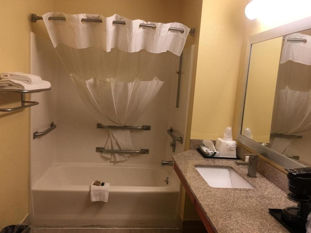 Todas las habitaciones del America’s Best Inn Hawkinsville cuentan con TV por cable y comodidades para planchar. También se incluyen un microondas y una pequeña nevera. El baño privado está equipado con secador de cabello.