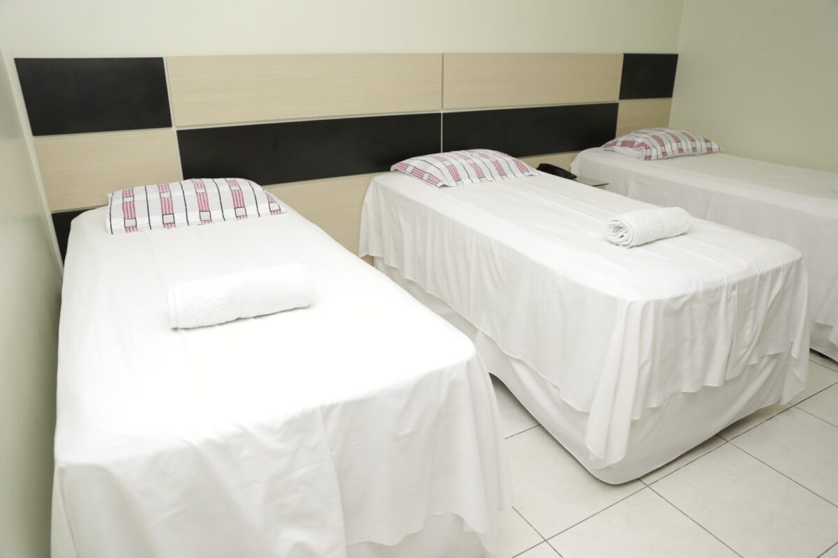 En este hotel, cada habitación cuenta con ropa de cama y toallas.