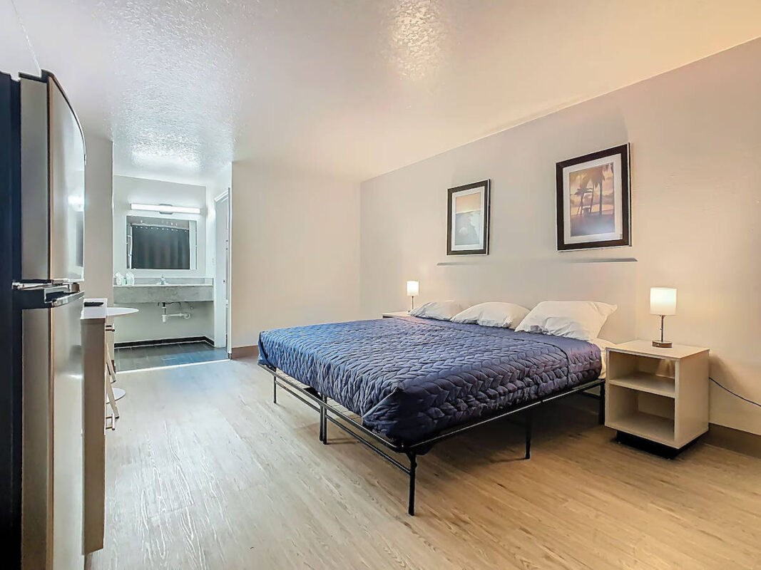 Nuestras unidades totalmente amuebladas incluyen TV de pantalla plana, Wi-Fi gratuito, refrigerador y microondas. Con lavandería en el lugar y servicios de limpieza semanales (por un costo adicional), tenemos todo lo que necesita.