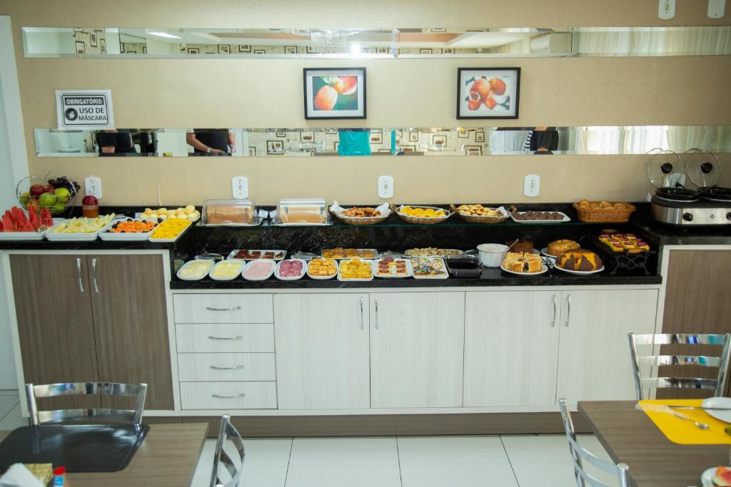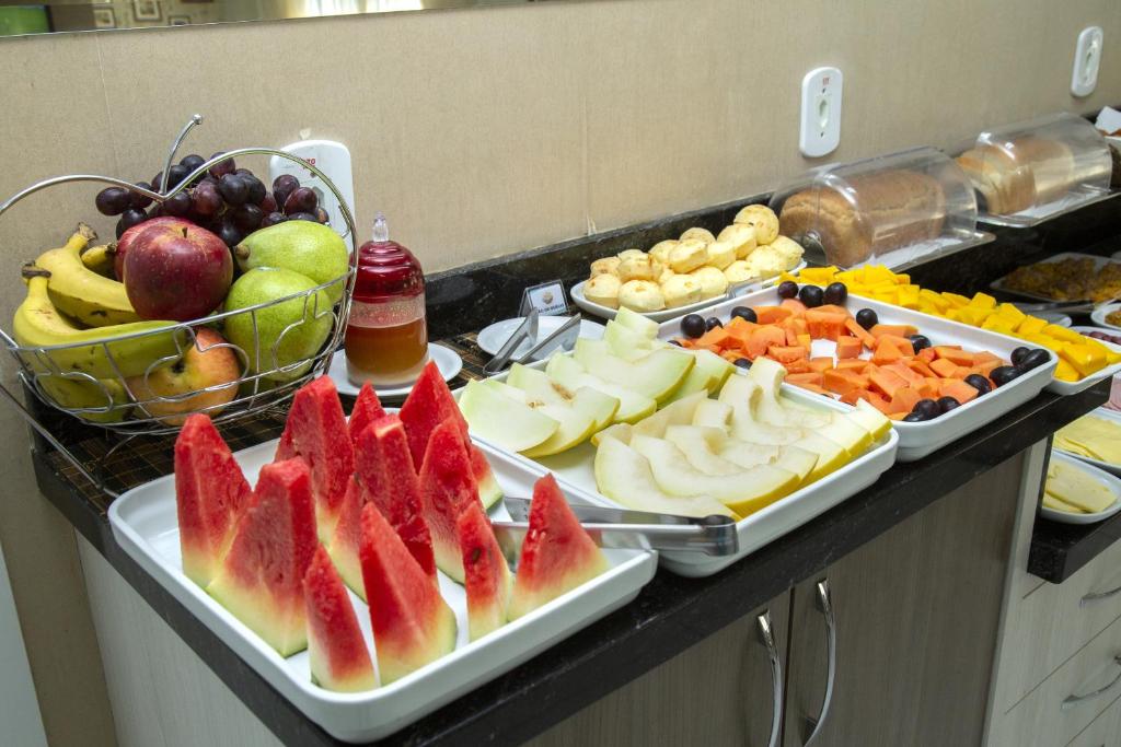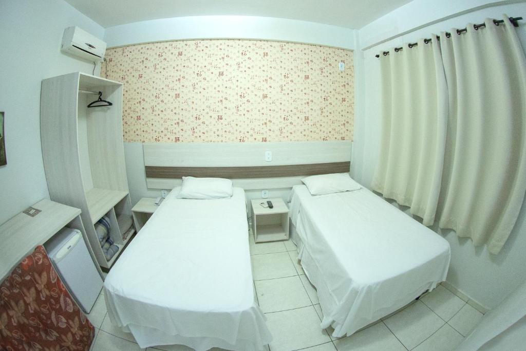 Nossos apartamentos oferecem tudo o que você precisa para uma estadia agradável: TV LED 32″, ar-condicionado split, frigobar, telefone, internet Wi-Fi, além de café da manhã incluso, estacionamento fechado e monitorado — tudo já incluso na diária.