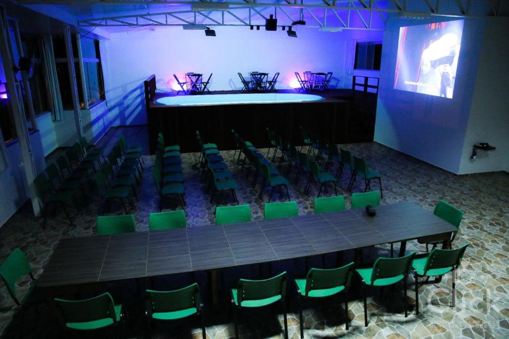 Contamos também com uma recepção climatizada e acolhedora, além de um bar anexo onde você pode desfrutar de deliciosos drinks em um ambiente agradável.